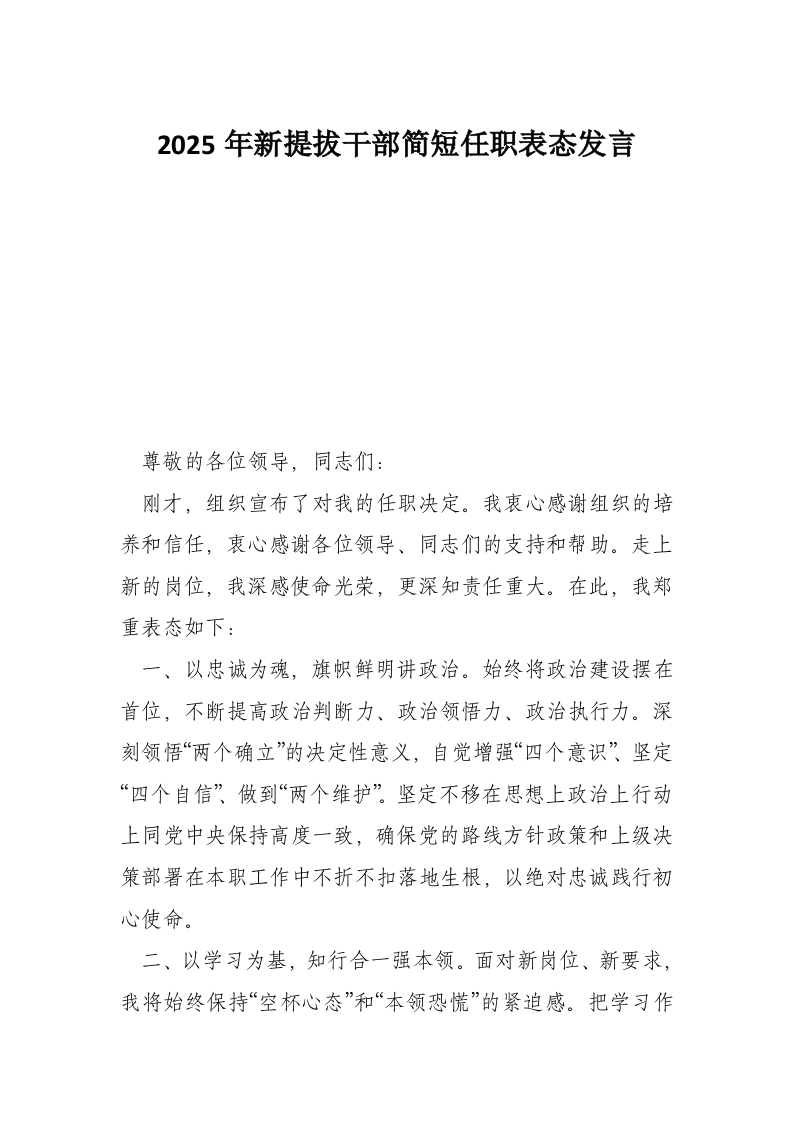 首页讲课讲稿2025年新提拔干部简短任职表态发言