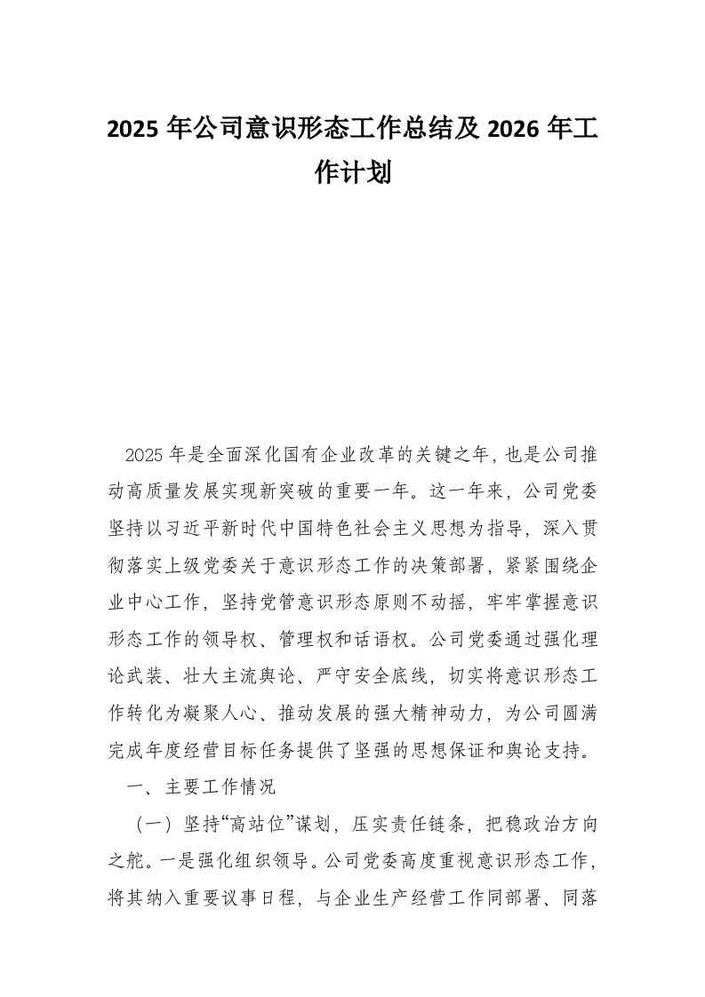 首页讲课讲稿2025年公司意识形态工作总结及2026年工作计划