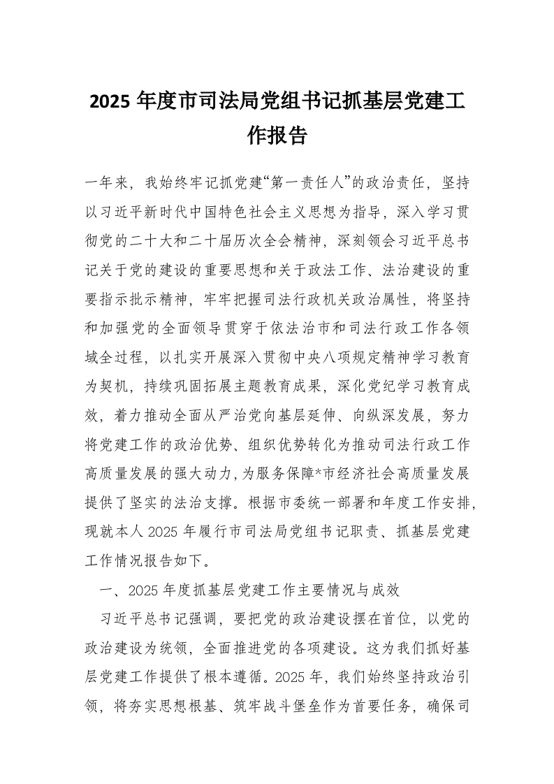 首页讲课讲稿2025年度市司法局党组书记抓基层党建工作报告
