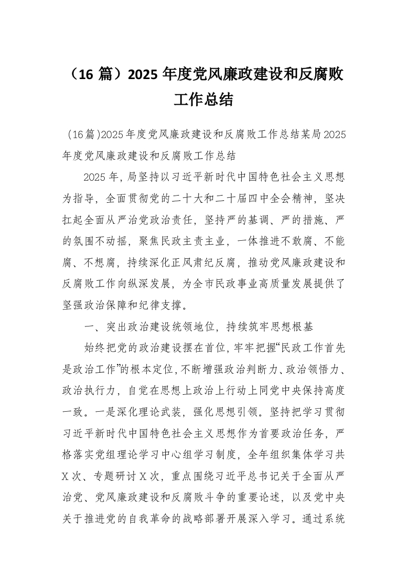 (16篇)2025年度党风廉政建设和反腐败工作总结