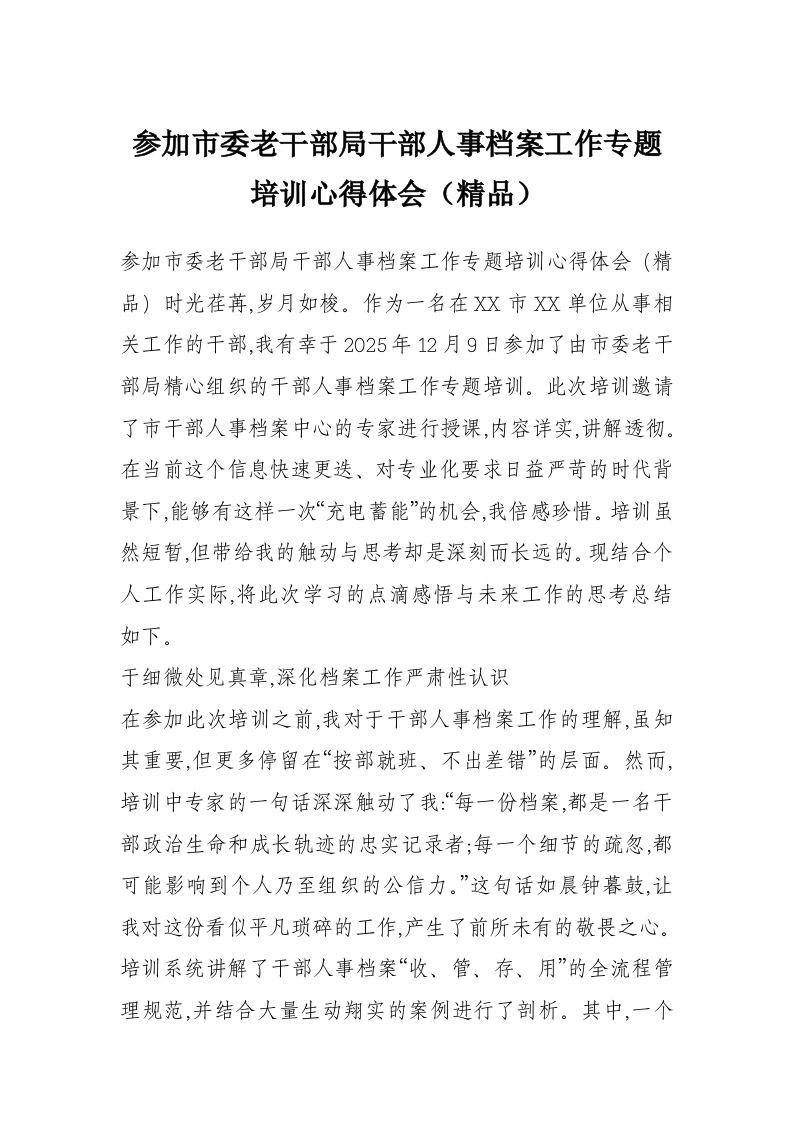 首页材料汇编参加市委老干部局干部人事档案工作专题培训心得体会(精品)