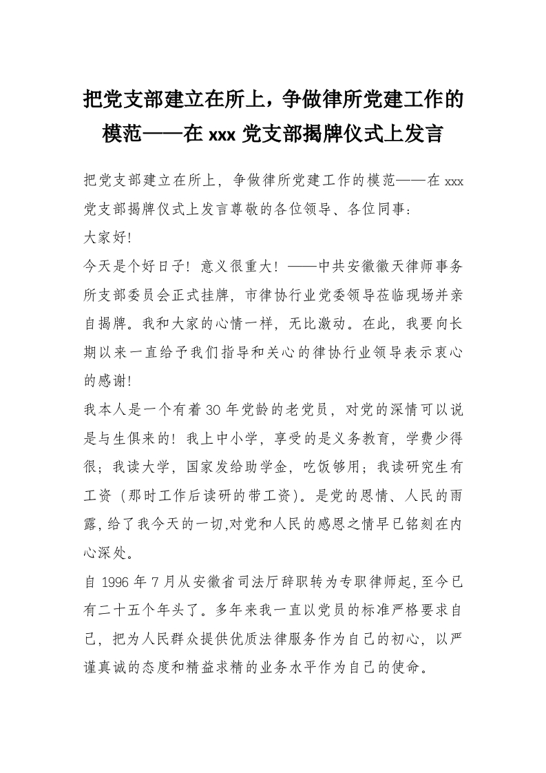 首页材料汇编把党支部建立在所上,争做律所党建工作的模范——在xxx党支部揭牌仪式上发言