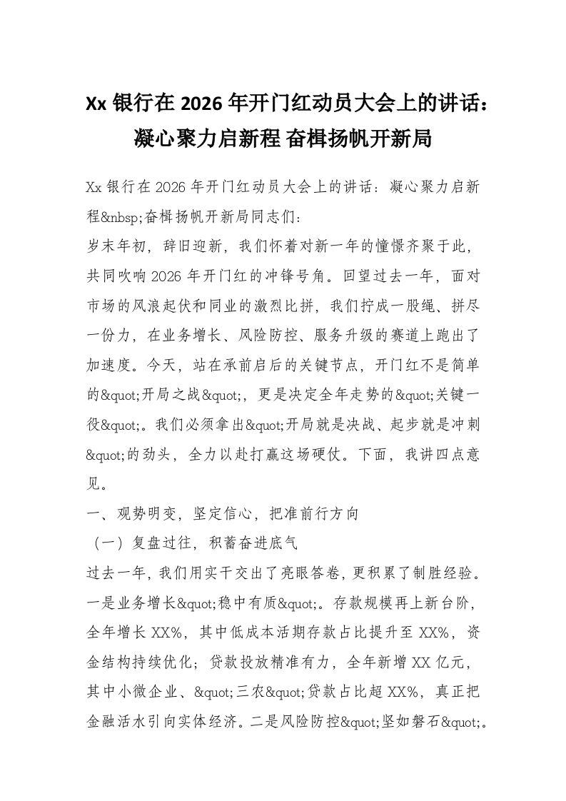 Xx银行在2026年开门红动员大会上的讲话:凝心聚力启新程 奋楫扬帆开新局
