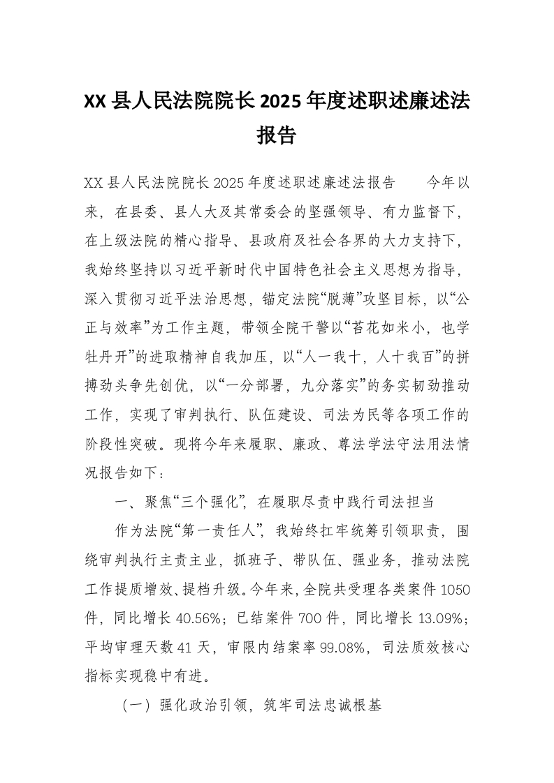 首页材料汇编XX县人民法院院长2025年度述职述廉述法报告