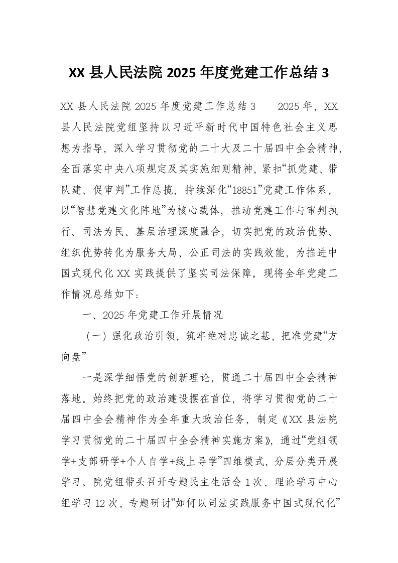 首页材料汇编XX县人民法院2025年度党建工作总结3