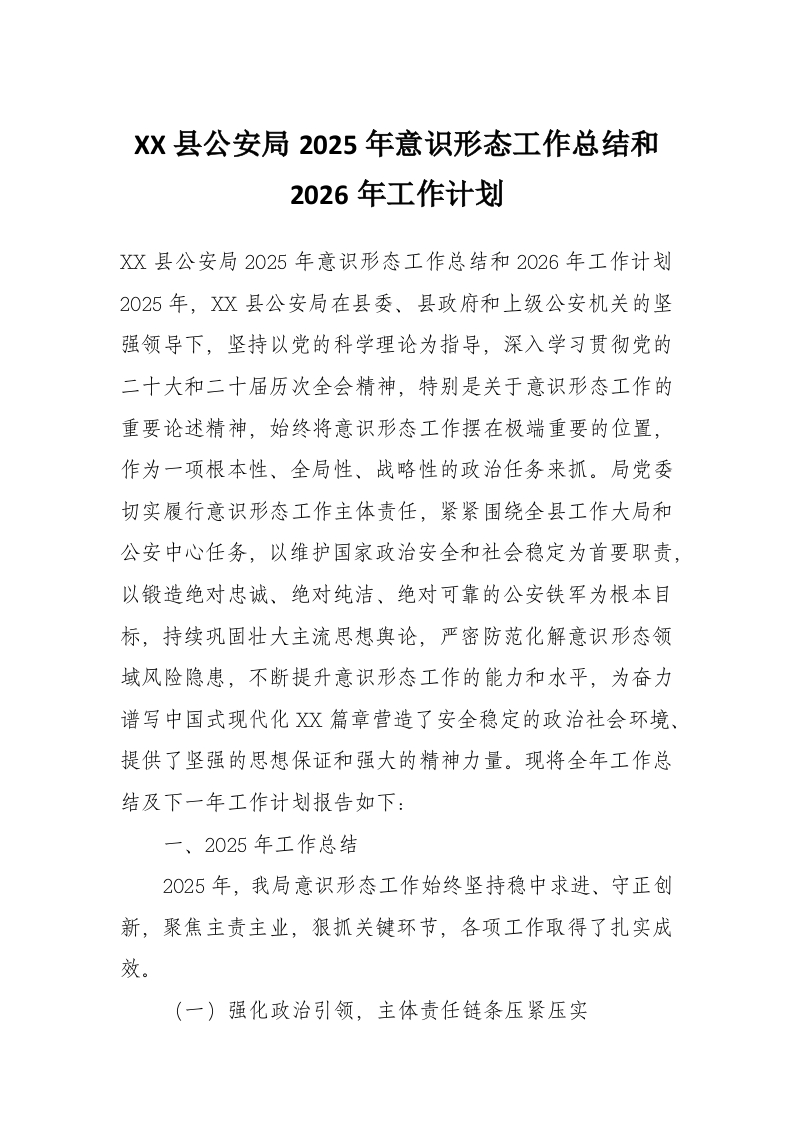 XX县公安局2025年意识形态工作总结和2026年工作计划