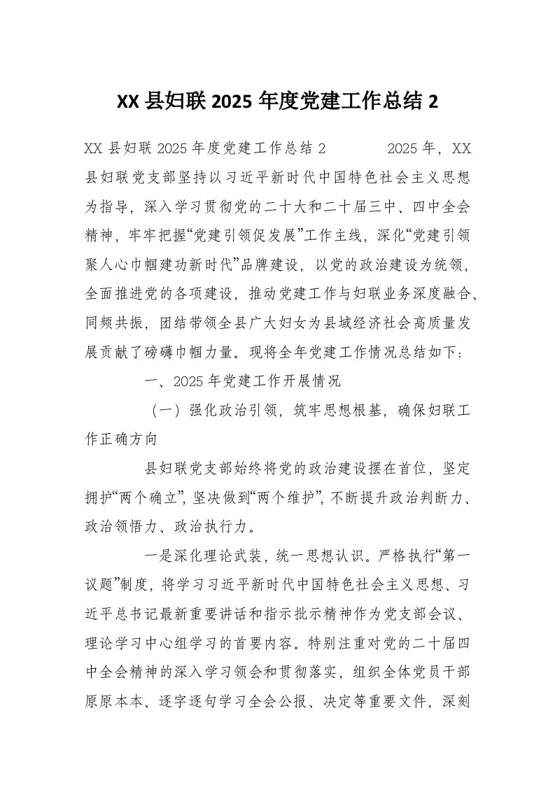 首页材料汇编XX县妇联2025年度党建工作总结2
