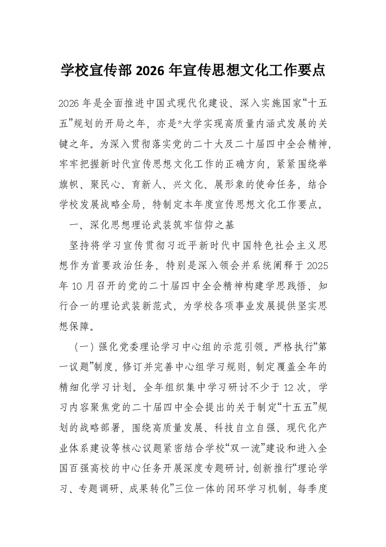 首页材料汇编学校宣传部2026年宣传思想文化工作要点