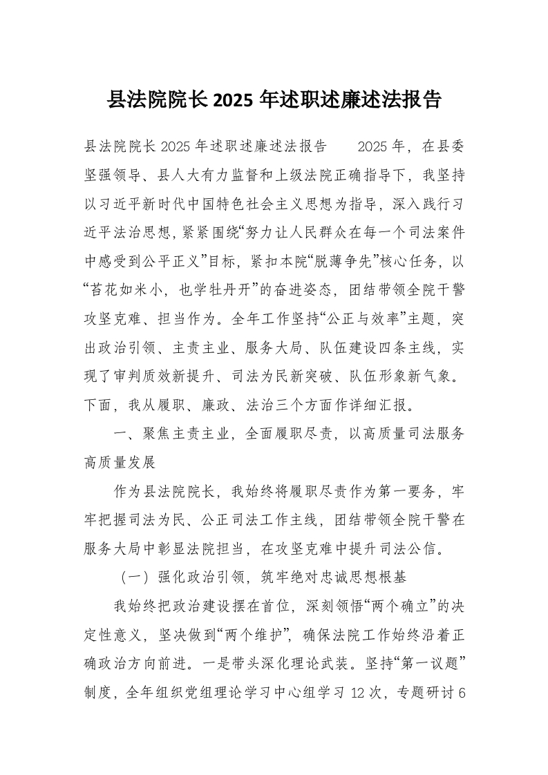 首页材料汇编县法院院长2025年述职述廉述法报告
