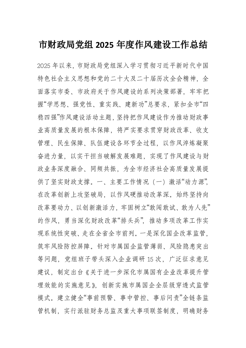 首页材料汇编市财政局党组2025年度作风建设工作总结