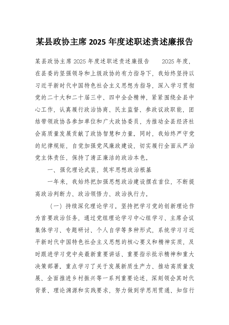 首页材料汇编某县政协主席2025年度述职述责述廉报告