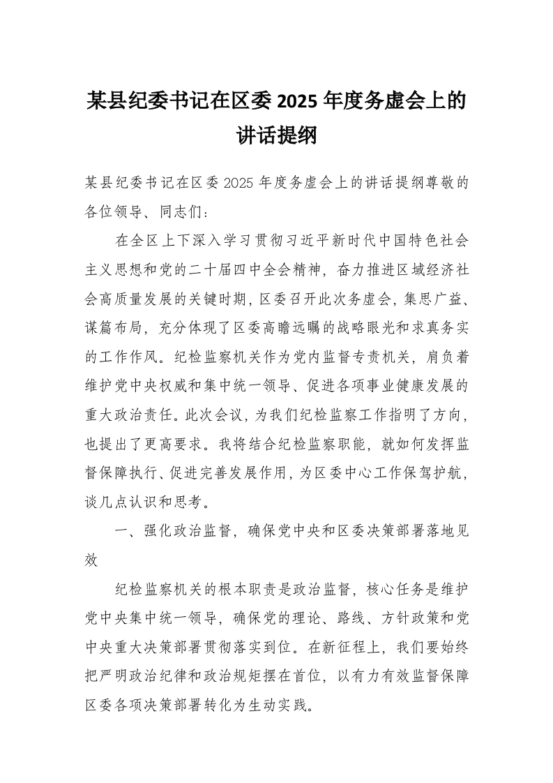 某县纪委书记在区委2025年度务虚会上的讲话提纲