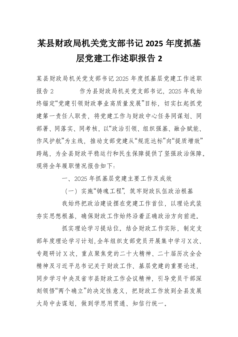 某县财政局机关党支部书记2025年度抓基层党建工作述职报告2