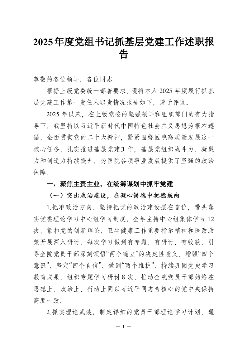 2025年度党组书记抓基层党建工作述职报告