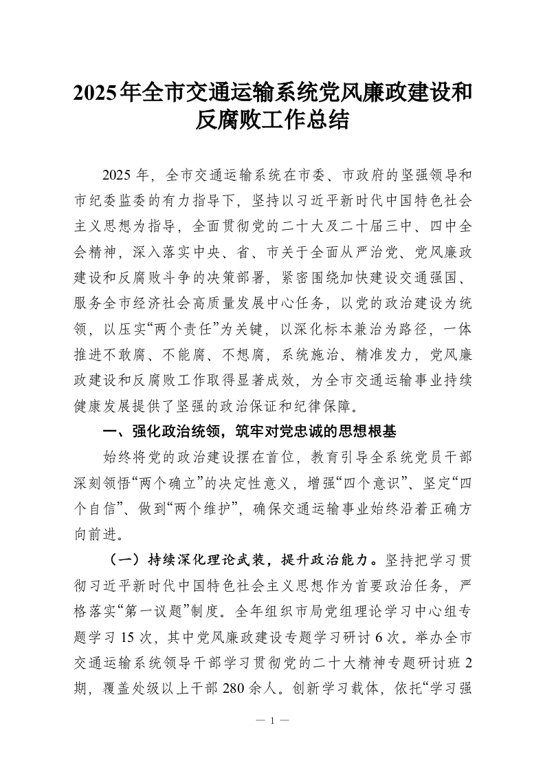 首页工作文档2025年全市交通运输系统党风廉政建设和反腐败工作总结