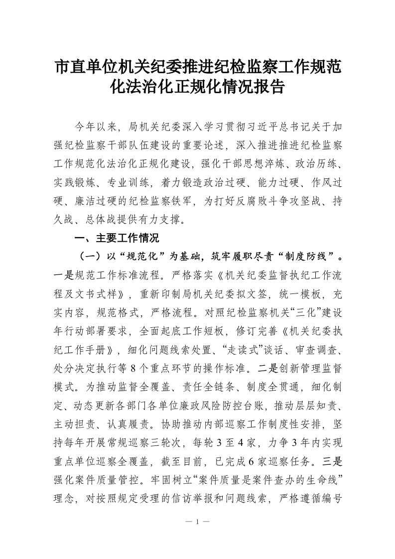 首页工作文档市直单位机关纪委推进纪检监察工作规范化法治化正规化情况报告