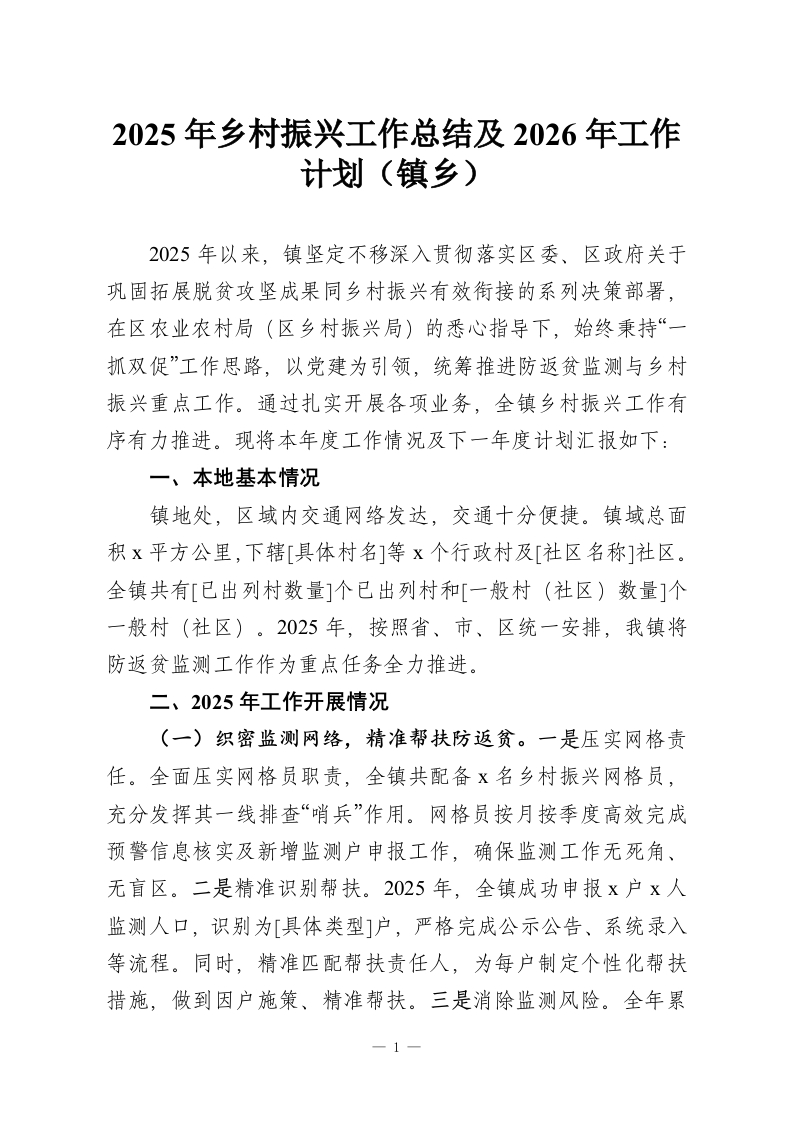 首页工作文档2025年乡村振兴工作总结及2026年工作计划(镇乡)