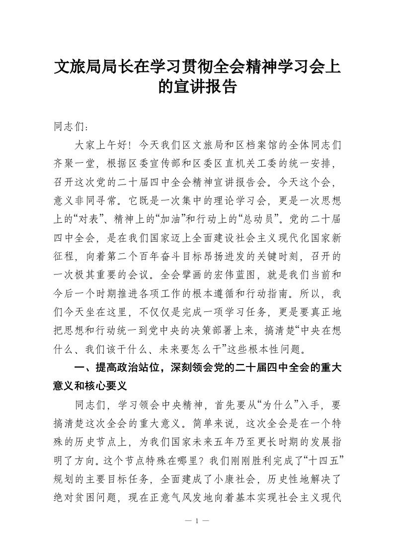 首页工作文档文旅局局长在学习贯彻***精神学习会上的宣讲报告