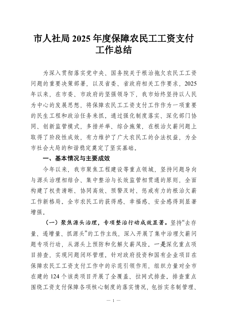 首页工作文档市人社局2025年度保障农民工工资支付工作总结