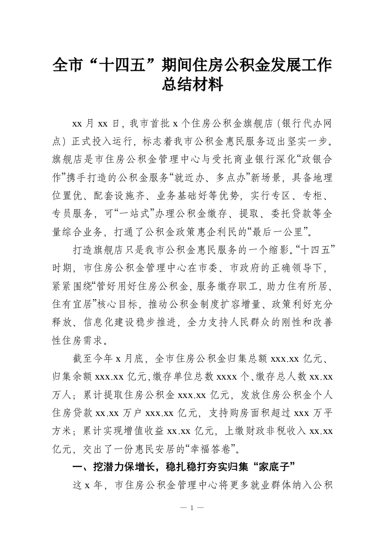 全市“十四五”期间住房公积金发展工作总结材料