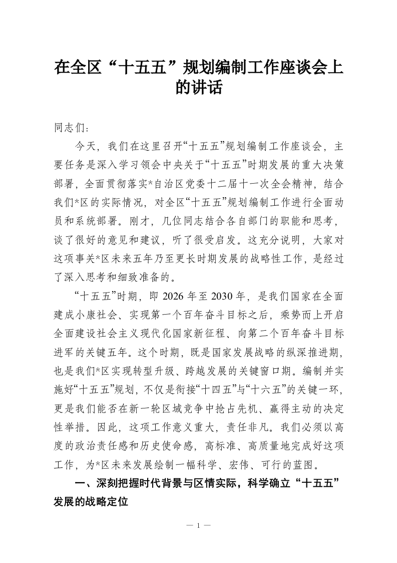 首页工作文档在全区“十五五”规划编制工作座谈会上的讲话