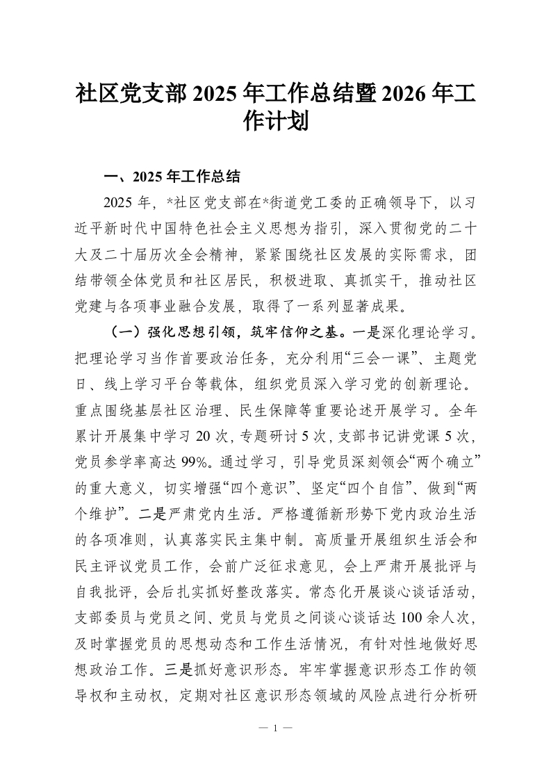 首页工作文档社区党支部2025年工作总结暨2026年工作计划