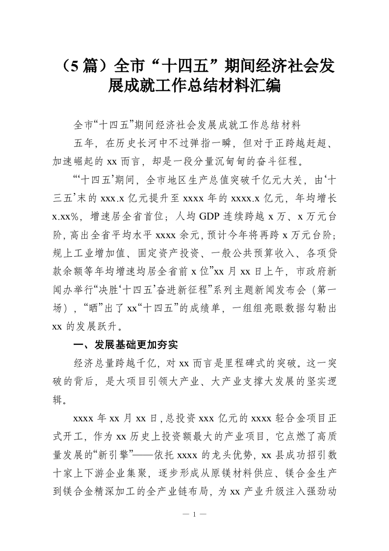 (5篇)全市“十四五”期间经济社会发展成就工作总结材料汇编