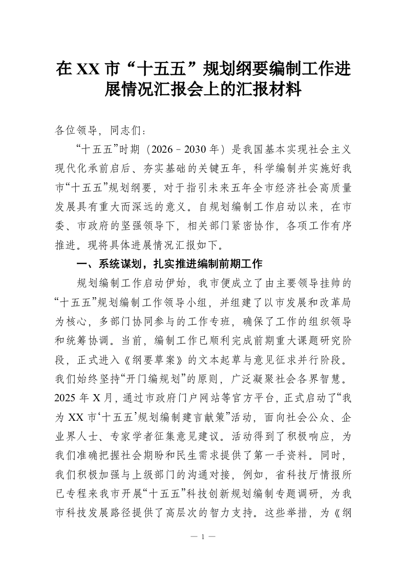 在XX市“十五五”规划纲要编制工作进展情况汇报会上的汇报材料