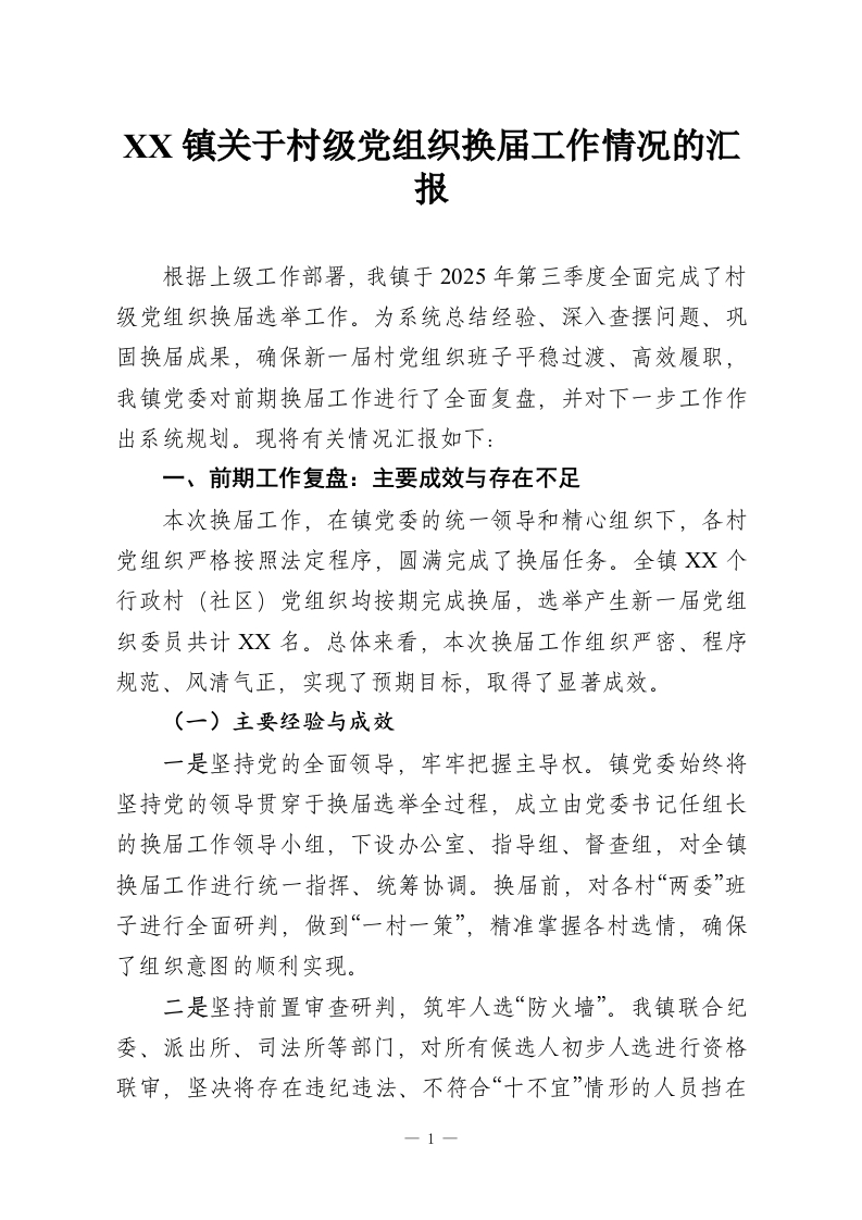 首页工作文档XX镇关于村级党组织换届工作情况的汇报
