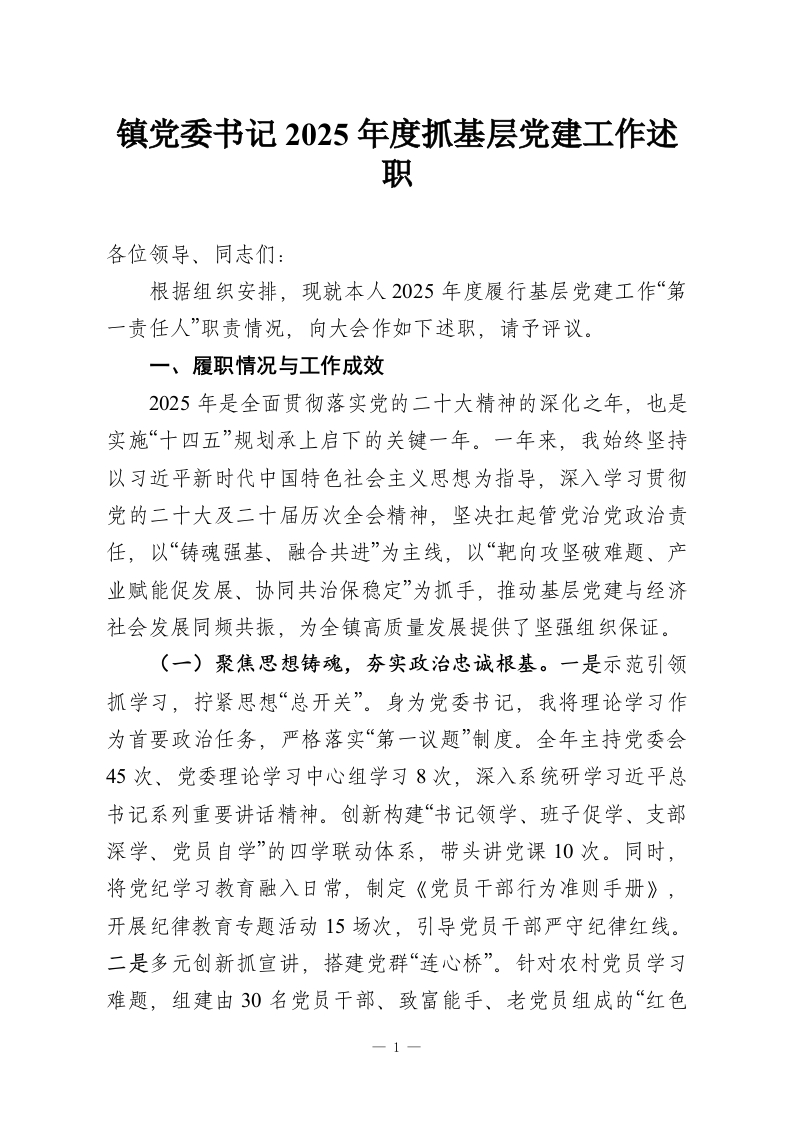 首页工作文档镇党委书记2025年度抓基层党建工作述职